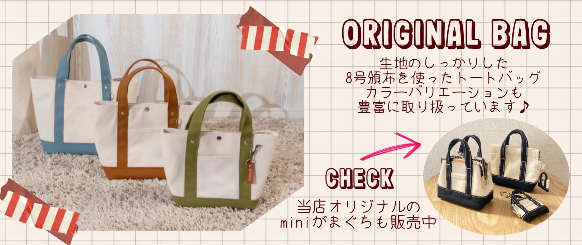 トートバッグ ハンドメイド Mサイズ テープ