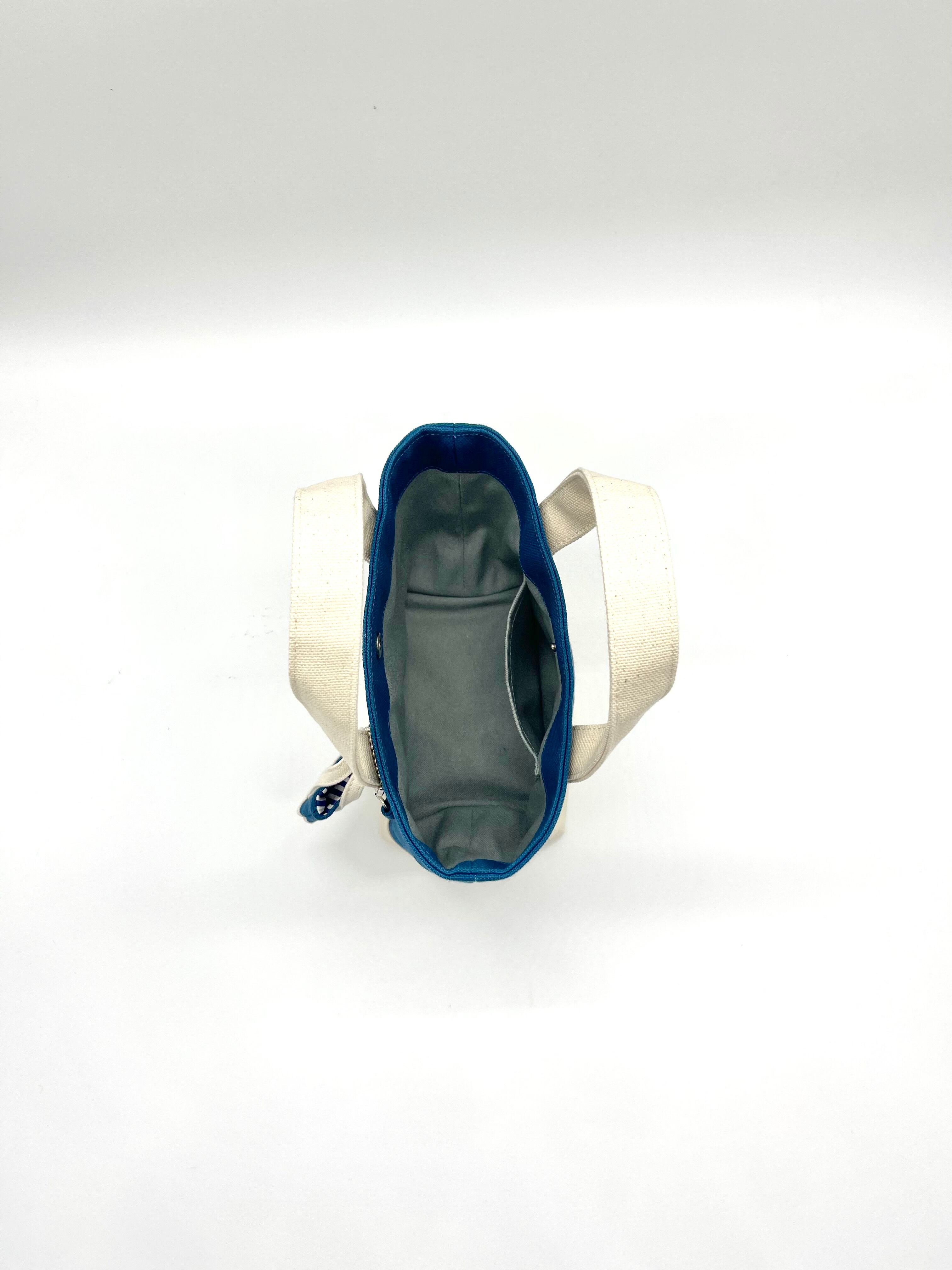 このハンドメイドトートバッグは、毎日の生活を彩るアイテムとして最適です。小さめのサイズで、普段使いやお出かけに重宝します。頒布素材を使用しており、耐久性に優れ、長くお使いいただけます。
